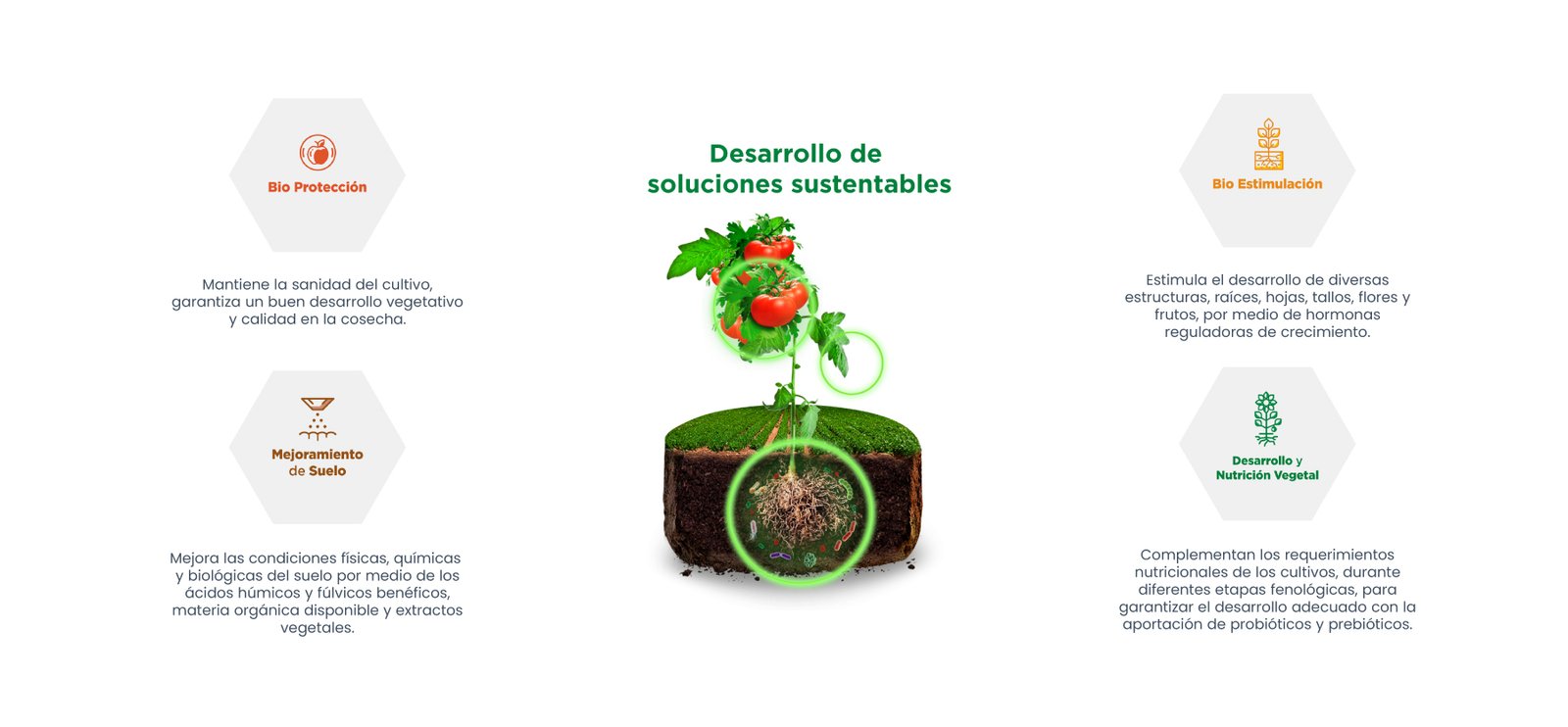 Empresa dedicada a la investigación, desarrollo e innovación de soluciones biotecnológicas para transformar la agricultura bajo el concepto de “Sistema de Bio Nutriprotección”, el cual recientemente fue elegido a nivel mundial por la fundación Solar Impulse como una de las 1000 soluciones sustentables y reconocida por la revista Forbes México como una de las 30 promesas de negocios para el 2020.